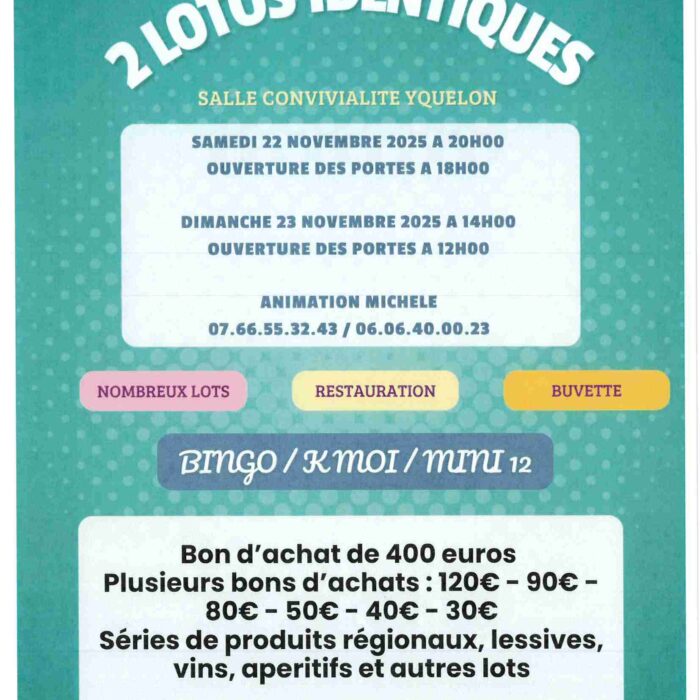 Le repas des Aînés aura lieu le dimanche 16 novembre à la salle de convivialité, il est offert aux habitants de plus de 71 ans. Bien vouloir s'inscrire en mairie.